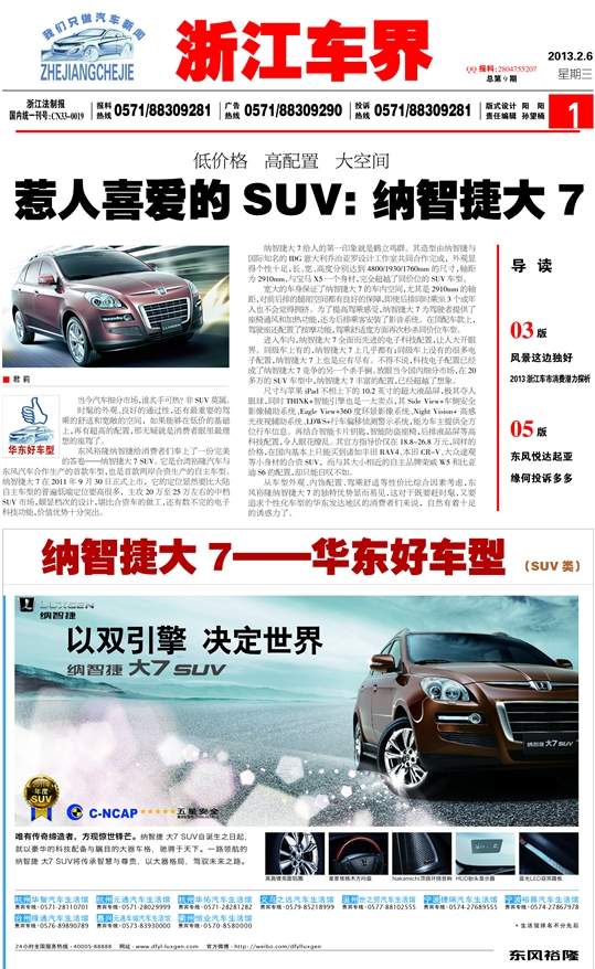 从车型外观、内饰配置、驾乘舒适等性价比综合因素考虑,东风裕隆纳智捷大7的独特优势显而易见,这对于既要赶时髦,又要追求个性化车型的华东发达地区的消费者们来说,自然有着十足的诱惑力了。
