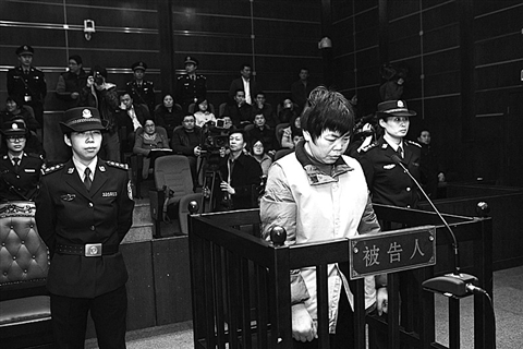 “哗啷”、“哗啷”,伴随着脚镣的声音,李丽娟被法警押进法庭。法庭内坐得满满当当的,但此时此刻却是鸦雀无声。