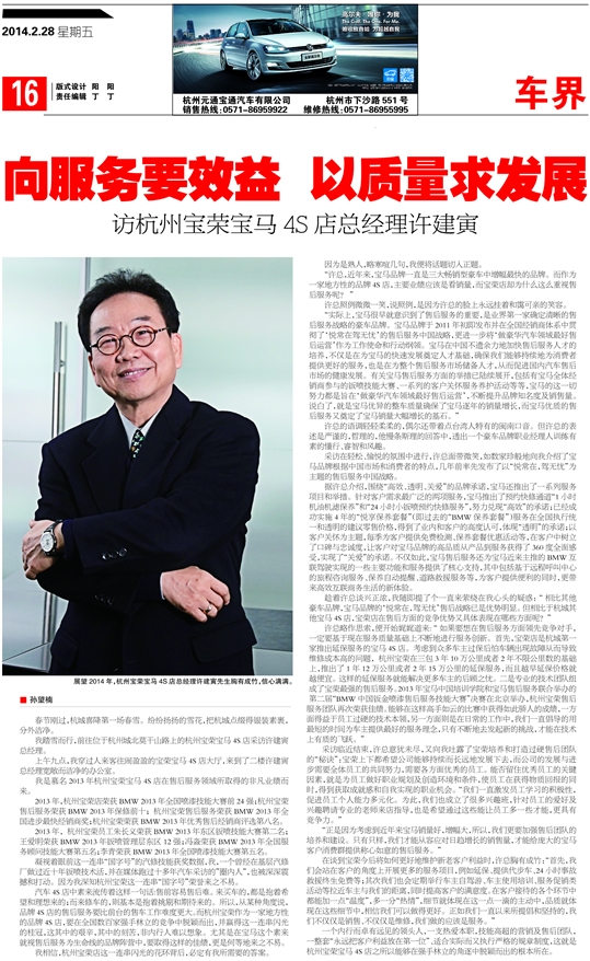 我是慕名2013年杭州宝荣宝马4S店在售后服务领域所取得的非凡业绩而来。