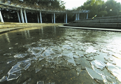 昨天,北方强寒潮的前锋已渗入杭州,西湖景区部分水域结起薄冰 林云龙 董旭明 摄