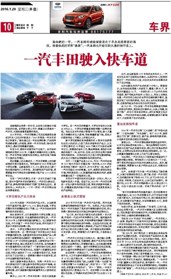 丰田对于中国市场的关注度进一步加大,导入大批新车型进入中国。受益于此,2016年一汽丰田也将进一步加大新车型的投放力度,将有多款新车陆续上市,并覆盖到更多的细分市场,从而打造更具竞争力的产品阵容。