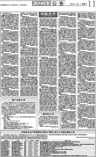 中国信达资产管理股份有限公司浙江省分公司债权催收公告