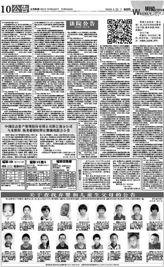 关于查找弃婴和儿童生父母的公告