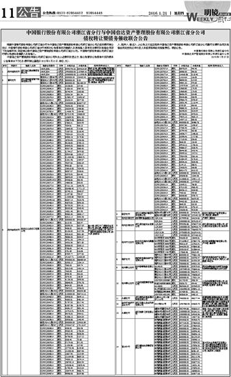 中国银行股份有限公司浙江省分行与中国信达资产管理股份有限公司浙江省分公司 债权转让暨债务催收联合公告