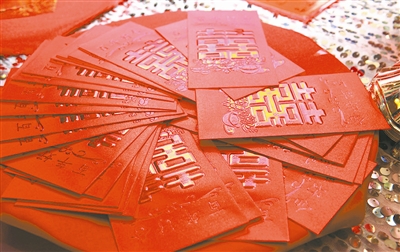 婚礼从当天下午5点58分正式开始,新郎的表姐小凤是伴娘之一,不仅要帮新郎新娘保管红包,还要在红包做上记录,以免搞混。