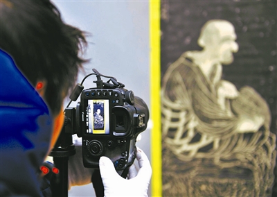 图为1月21日,工作人员在对馆藏文物进行拍照建档工作。