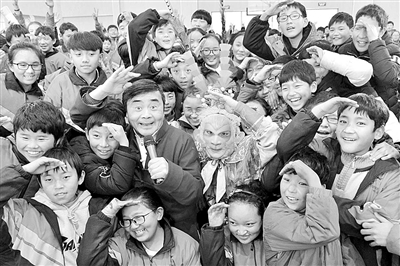 1月28日,绍兴柯桥西藏民族中学的藏族学生们和绍兴”猴王”刘建扬一起在学习绍剧猴戏,喜迎猴年新春。