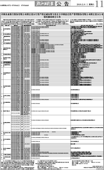 中国农业银行股份有限公司浙江省分行资产转让通知暨与受让方中国信达资产管理股份有限公司浙江省分公司 债权催收联合公告