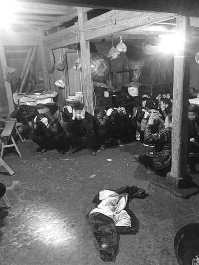 当晚9时许,赌徒们赌得正酣时,民警从四面八方冲进赌场,将赌徒们团团围住。