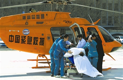 2月29日,河南省巩义市人民医院一位突发紧急情况的重症患者在医师的监护下,搭乘直升机转运至河南省人民医院就医。