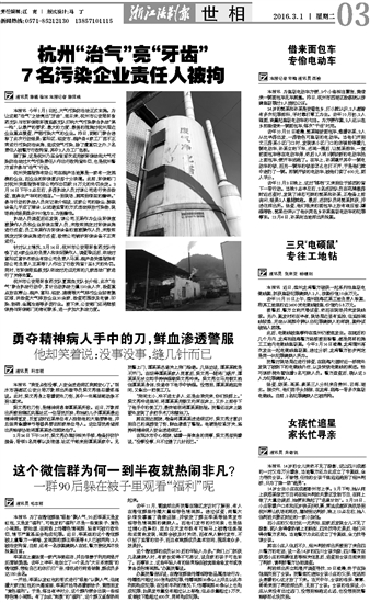 杭州“治气”亮“牙齿” 7名污染企业责任人被拘