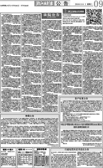 叶亭凤、方加龙、金荣杰:本院受理原告浙江恒隆担保有限公司诉被告叶亭凤、方加龙、金荣杰合同纠纷一案,因无法向你们直接送达,依照《中华人民共和国民事诉讼法》第92条之规定,依法向你公告送达起诉状副本及应诉通知书、合议庭组成人员通知书等材料。自本公告发出之日起,经过60日,即视为送达。提出答辩状的期限为公告送达期满后的15日内,举证期限为公告期满后的30日内。本公告同时向你们送达开庭传票,本院定于2016年6月16日9时,在杭州市富阳区人民法院11号法庭公开开庭审理此案。逾期将依法缺席判决。杭州市富阳区人民法院