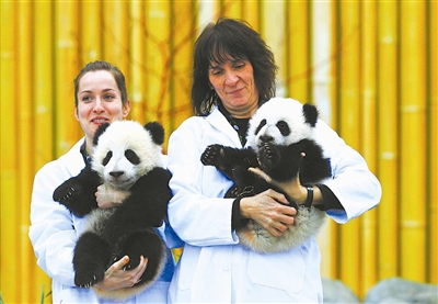 经过为期一个月的征名活动,加拿大多伦多动物园当日举行命名仪式,宣布已经4个多月大的一对龙凤胎熊猫宝宝被正式命名为“加盼盼”与“加悦悦”。作为首批出生在加拿大国土上的熊猫宝宝,“加盼盼”与“加悦悦”由2013年3月从中国来到加拿大多伦多动物园的雌性大熊猫“二顺”于2015年10月13日产下。