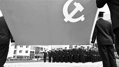 近日,绍兴市柯桥区公安局开展“重温入党誓词·人人佩戴党徽”活动,局党委班子成员为连续3年被评为优秀公务员的党员民警代表佩戴党徽,随后全体人员面向党旗重温入党誓词。
