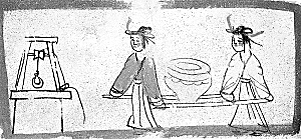| 古代抬水图(甘肃嘉峪关魏晋时代墓砖画,临摹) |