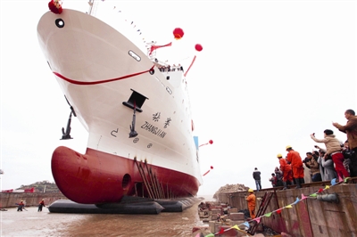 3月24日,中国万米级载人深渊器科考母船“张謇”号在温岭市天时造船有限公司下水。