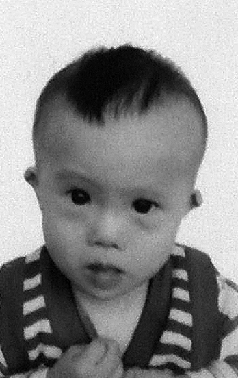 某男孩,2013年4月13日出生(估)。2013年7月13日发现被遗弃在余杭区经济开发区五金机电市场德雅金座大酒店一楼过道。随身附一些衣服及一袋奶粉,一只奶瓶。先天性心脏病。