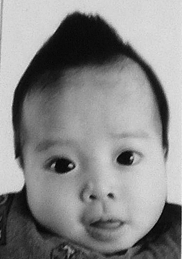 某男孩,2013年7月25日出生(估)。2013年7月27日发现被遗弃在余杭区南苑街道新安社区新秀家园北区122号。随身附花格子拉包带下身一块浅色尿布。左侧脑裂畸形。