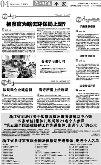 浙江省司法厅关于拟推荐杭州市法律援助中心等 15家单位(集体)、陈岚等21名个人参评 “第五届全国法律援助工作先进集体、先进个人”的公示
