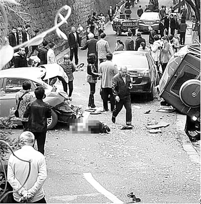 据现场目击者称,事故发生在下午2点半左右,一辆黑色奔驰越野车沿着墓地道路往山下开。当时,车辆前方下坡的位置,正好有一家人在扫墓,还有一家人在往下坡走。这时,奔驰车突然失控,冲进了扫墓的人群……车子撞上树和路边的车后,停了下来。从现场视频和照片可以看出,越野车的左后方,一辆银灰色的小轿车右后车门及后备厢受损比较严重。两辆车中间的路面上,散落着很多碎屑。
