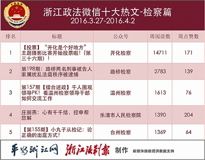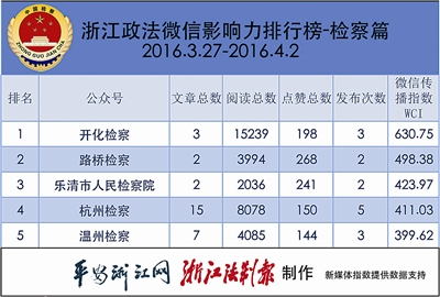 纷纷清明雨,绵绵思念情。在这个连空气中都弥漫着思念的日子里,浙江政法微信影响力排行榜第45期如约而至。长江后浪推前浪,本期榜单又是浪潮汹涌、角逐激烈。一起来揭榜吧!