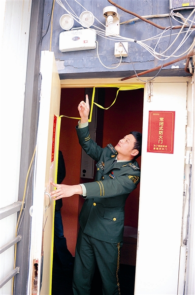 走到二楼出口处,检查人员又发现隐患:安全出口处的常闭门竟然敞开着,一旦发生火情浓烟就会迅速封锁整幢大楼,更可怕的是常闭门上的闭门器被一根插销所替代,如果被困人员选择这扇门逃生,很可能因无法逃离而倒在出口处。
