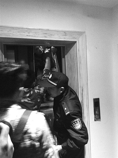 此时,同困在电梯内的50多岁的电工金大爷突感胸闷,喘不过气。杨先生想尽一切办法求救。他强行拉开电梯厢门,扒开一条细缝,把手机伸出去试图寻找信号,这才拨通了110。