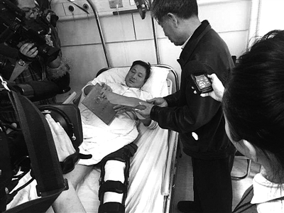 本报讯 昨天下午,杭州市见义勇为基金会常务副理事长张冠东一行,前往红会医院看望慰问正在医院接受治疗的蒋承仁,现场宣读了杭州市见义勇为基金会表彰决定,授予蒋师傅杭州市见义勇为积极分子荣誉称号,并颁发奖金5万元。