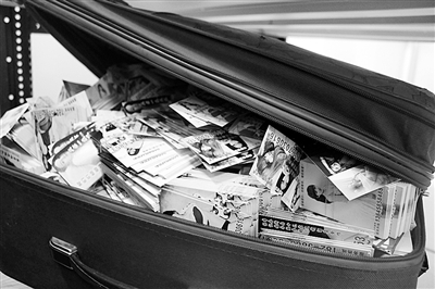 本报讯 近日,诸暨市公安局城东派出所接到了群众的举报:“警察同志,我们酒店里有人正在发放招嫖小卡片!”民警迅速前往处置,当场抓获了正在发放小卡片的犯罪嫌疑人程某,随后在他们租房内将其怀有身孕的妻子岳某抓获,并收缴了满满一行李箱万余张招嫖小卡片。