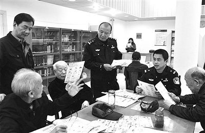 近日,海盐县公安局武原派出所民警来到秦山核电集团筹备组阅览室,向老年人宣传如何防范通讯(网络)诈骗。海盐公安专门印制了“通讯(网络)诈骗常见类型”宣传彩页,通过民警走访进行发放,提高广大群众的防骗意识。