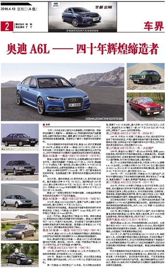 浙江法制报 浙江车界 00015 奥迪A6L —— 四十年辉煌缔造者 2016-04-20 2 2016年04月20日 星期三