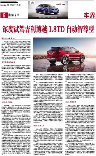 博越搭载了1.8TD涡轮增压和2.0L自然吸气两款发动机,首批测试的1.8TD版本是一台顺应时代的发动机,该涡轮增压发动机有当下欧洲发动机常用的缸内直喷技术,将汽油精准喷射到燃烧室内,最大限度改善燃烧,一方面做到了更大动力,另一方面对燃油经济性和环保都有帮助。