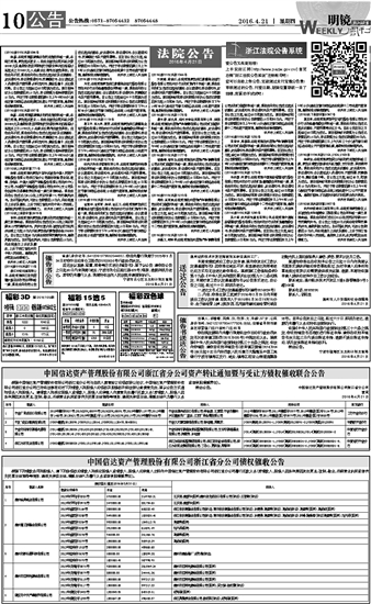 中国信达资产管理股份有限公司浙江省分公司债权催收公告