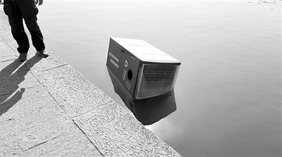 | 被赵某踢倒推进西湖的垃圾桶 |