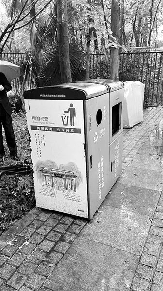 赵某万万想不到,被他踢倒并推进西湖的垃圾桶不是普通的垃圾桶。原来,这是去年年初投入使用的太阳能高科技垃圾桶,在西湖边大概只有10组,每组2个,印有西湖十景图案。这种款式的垃圾桶分布在断桥至锦带桥之间,顶部装有压缩机,可以对内部的垃圾进行压缩,使原本只能容纳100L的空间变大6-8倍,压缩机工作的能源来自于顶部的太阳能板,收集4到6小时的太阳光后,就能确保垃圾桶工作近两周的时间。