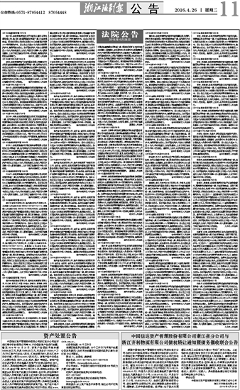 中国信达资产管理股份有限公司浙江省分公司与 浙江齐利物流有限公司债权转让通知暨债务催收联合公告