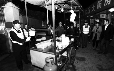 随后,执法队员又分组对辖区进行了巡查,又整理了一处无证夜宵摊。