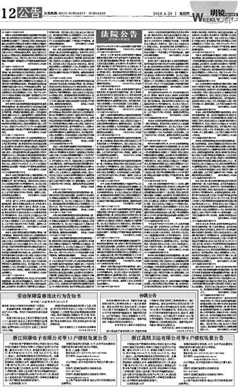 浙江阳康电子有限公司等13户债权处置公告