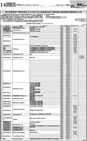浙江省浙商资产管理有限公司义乌市工业土地收储有限公司债权转让通知暨债务催收联合公告