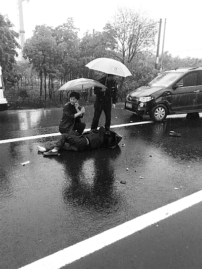近日,遂昌县看守所教导员包春福与同事从金华出差返回遂昌途中,路遇一起车祸。当时,一名伤员躺在地上淋着雨,交警、救护车还未赶到现场。包春福迅速调配车上人手,大家分头行动,了解人员伤情、放置警示标志、指挥车辆通行……直至救护车辆、交警到达现场,他们完成交接后才离开。