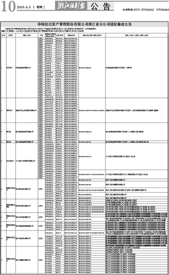 中国信达资产管理股份有限公司浙江省分公司债权催收公告