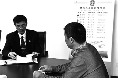| 2013年4月28日下午,执行法官固定接待日,执行局局长方照林正在接待当事人 |