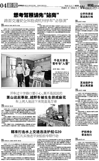 本报讯 昨日上午,杭州市机动车初学(增驾)驾驶人交通安全体验工作正式启动,24名机动车初学驾驶人现场参与了路面交通安全体验。这意味着,今后路面交通安全体验将成为学车的“必修课”。