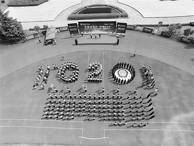 图为参加活动的富阳区公安分局200名青年团员现场排成“G20”字样。