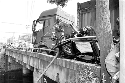 本报讯 昨日一早,惊险的一幕在杭州市萧山区三益线益农路段发生:一辆满载砂石的货车与一辆越野车相撞,导致越野车严重变形,车上2人被困。杭州消防支队调派力量赶赴现场救援,经过2小时破拆,将被困伤者全部救出。下午1时左右,现场事故车辆全部施救清理完毕。