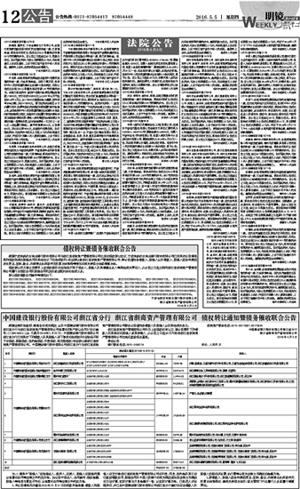 中国建设银行股份有限公司浙江省分行 浙江省浙商资产管理有限公司 债权转让通知暨债务催收联合公告