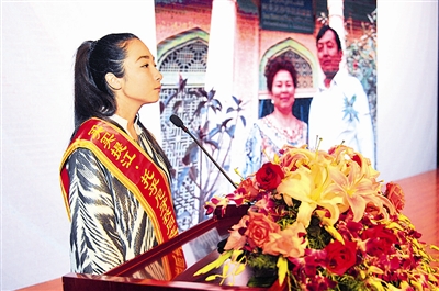 | 9日上午,买买提江·托乎尼牙孜的女儿深情讲述她眼中的父亲。 周尔博 摄 |