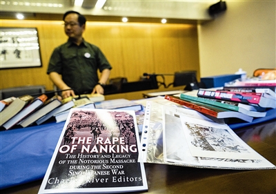 5月12日,在侵华日军南京大屠杀遇难同胞纪念馆,鲁照宁在整理捐赠的史料。