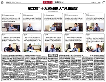 工作事迹:1999年始奋战在经侦办案一线,记三等功6次、嘉奖11次,获得杭州市税侦工作先进个人、经侦之星、执法先进个人、十佳优秀民警、十佳运河卫士称号,3次被评为优秀公务员。近五年来,参与侦破各类经济犯罪案件99起,起诉89人,抓获逃犯19名,挽回经济损失3700余万元;先后侦破了姜某等12人集资诈骗案、方某等6人合同诈骗案等一批大要案。2003年始患慢性肾衰疾病,仍坚持边治疗边工作,近三年加班加点超过3000小时,出差、追逃足迹遍布全国。