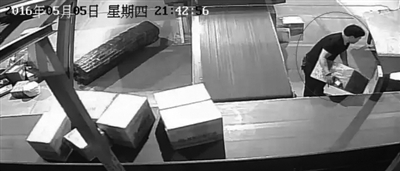 警方从监控视频中看到,5月5日晚9点开始,张某在自己负责的流水线上工作,9点42分,他选中目标,将一个大箱子放到脚边。9点48分,他钻进桌子底下,将原先的快递单撕掉,换上事先准备好的快递面单,上面填的是他的租住地址,但收件人和电话都是虚设的。换好后,他将快递件重新放进流水线,根据新地址,这个快递件就会流到负责海宁区块的分拣员那里。而他,只需在家等货就行。